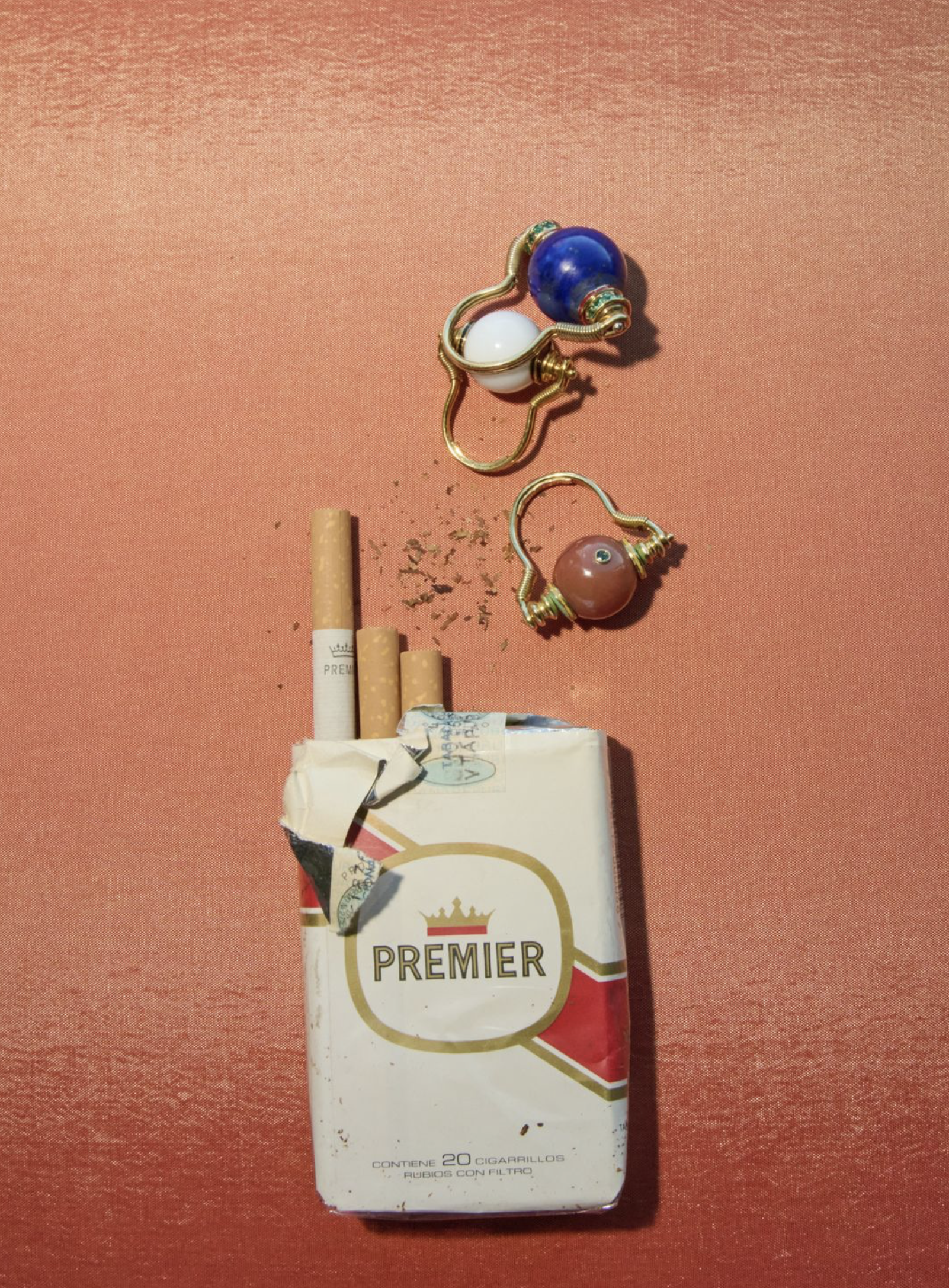 This lapis ring features a yellow gold band with signature details such as disks set with emeralds and red hot enamel, inspired by the originally Ancient Roman game of Bocce. Can also be worn as a pendant.